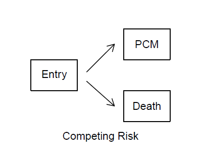 이후 dataevent를 다발성 골수종에 걸렸을 경우(pcm) 1, 다발성 골수종에 걸리지 않았지만 사망한 경우(death) 2, 다발성 골수종에 걸리지도 않았고 생존한 경우(censor) 0으로 코딩합니다. competing risk가 고려하고자 하는 데이터는 다벌성 골수종이 아닌 다른 이유로 사망한 2번 케이스 일것입니다.