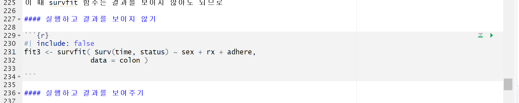 이 때 survfit 함수는 결과를 보이지 않아도 되므로